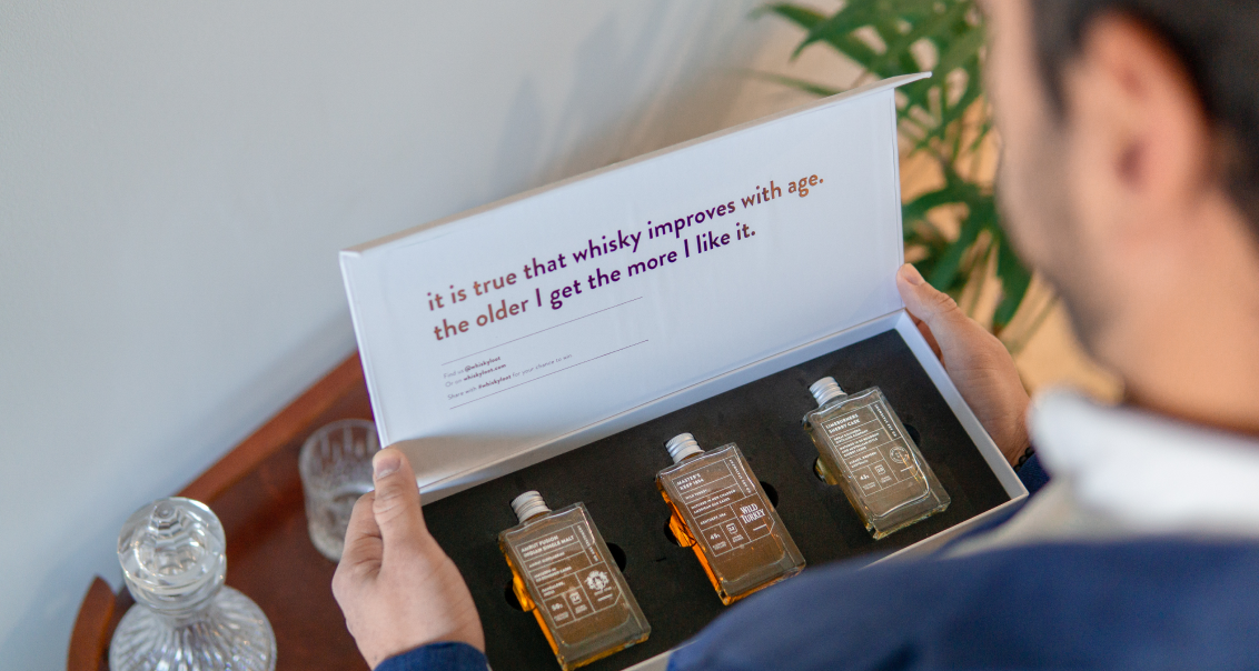 Every month’s taste pack includes distillery stories and taste profile cards.Nick, Facebook